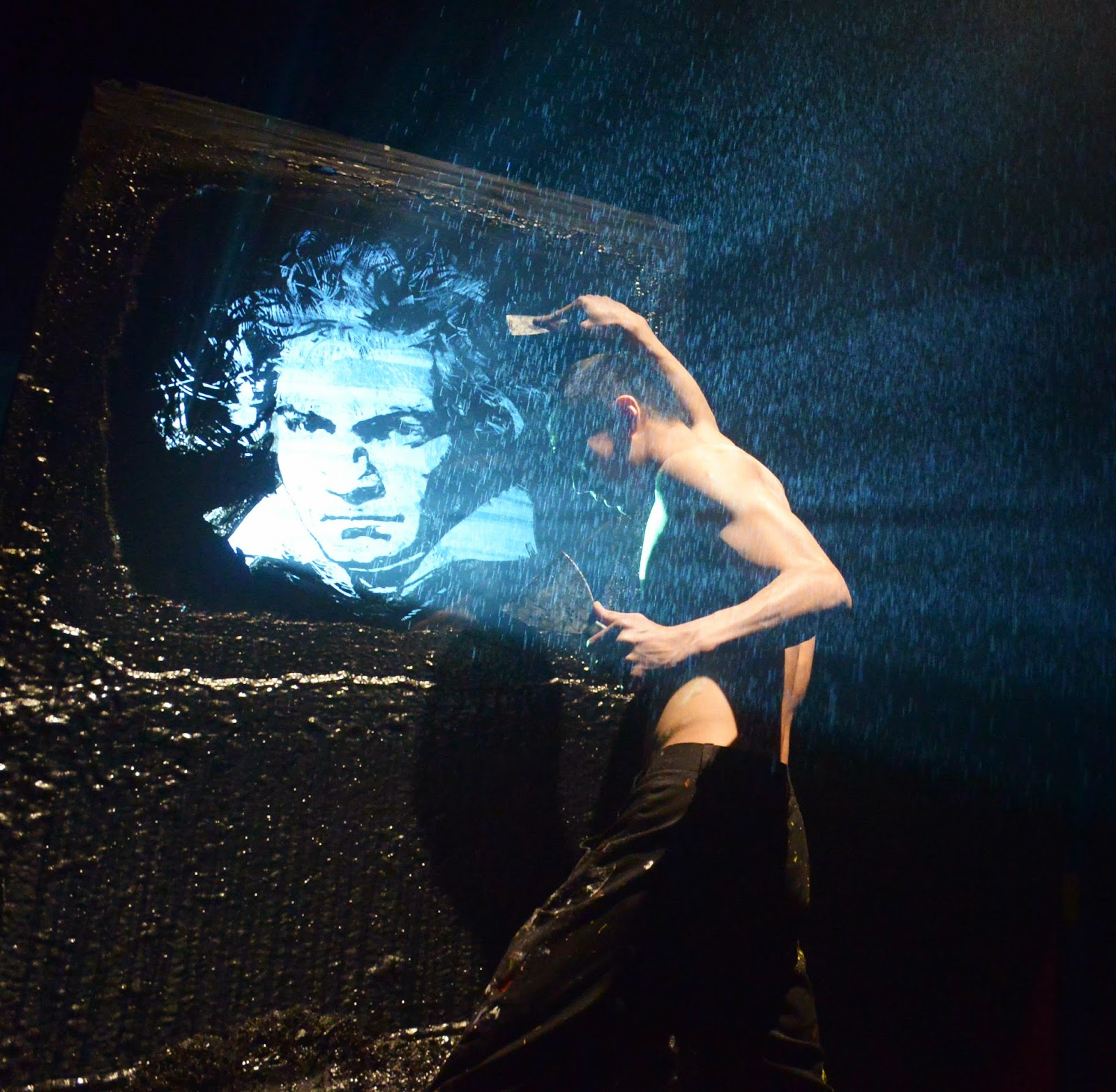 At the same time four painters cunningly pushed their on-stage-guest to the front, so he ended up with a paint brush and blank canvas in front of him.. You should have seen his face!