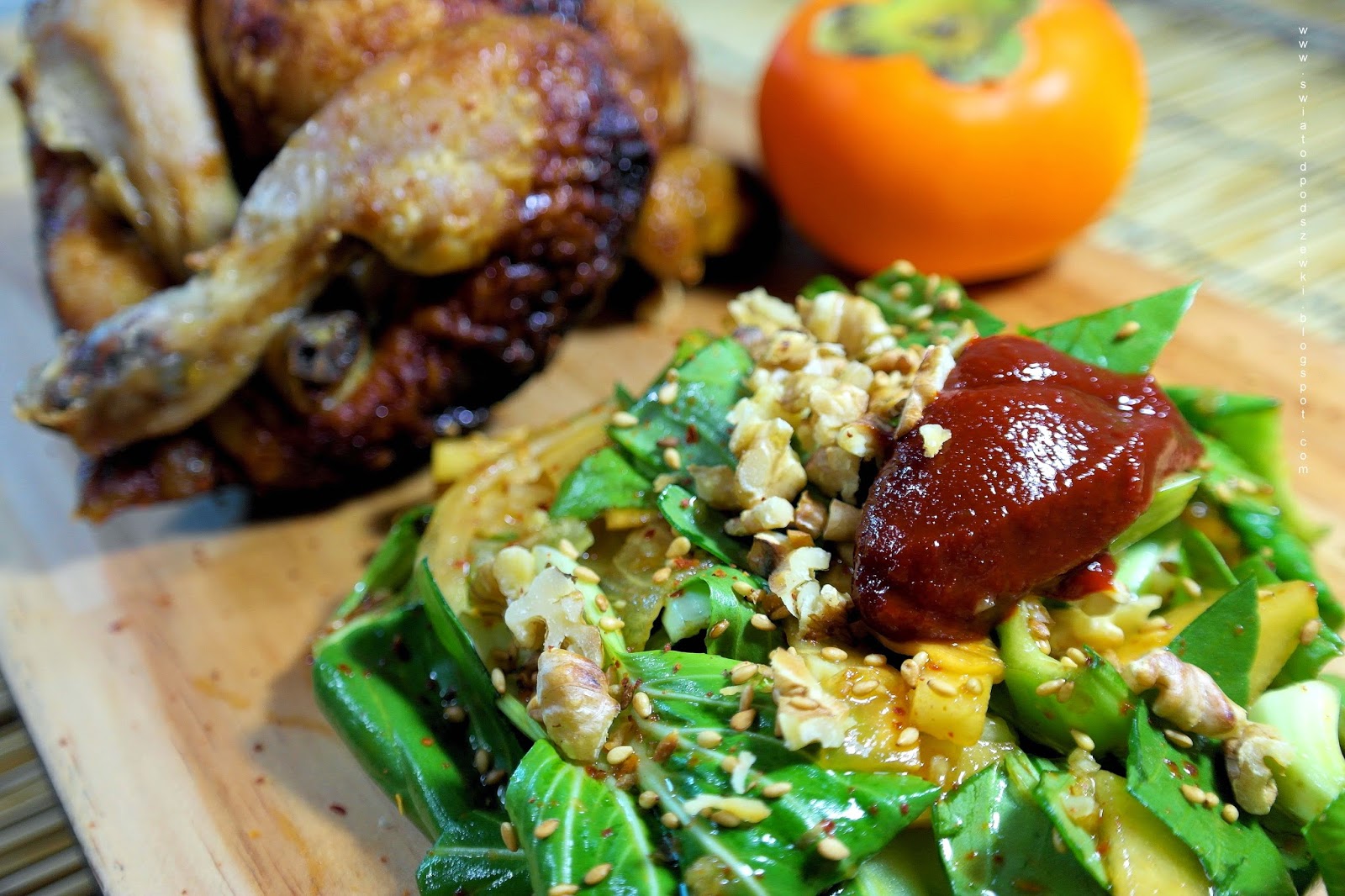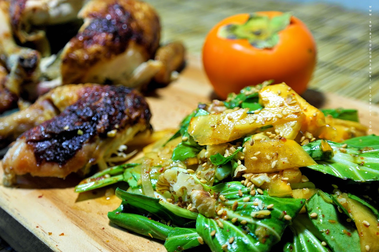 Stamtąd też pochodzi przepis na sałatę z młodej kapusty bok choi i persymony.